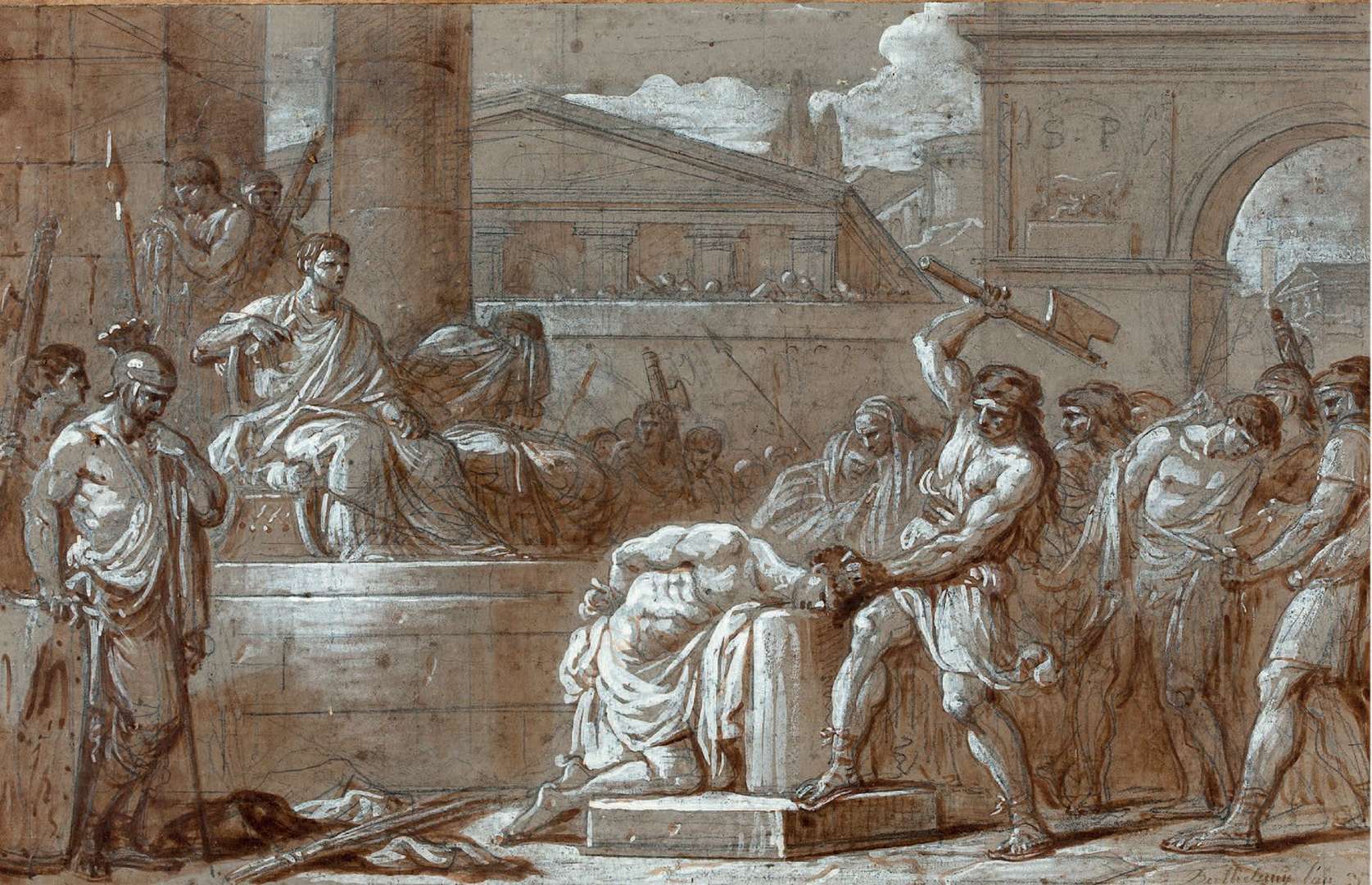 Brutus having his two sons put to death, black chalk, pen, brown ink, white gouache and brown wash