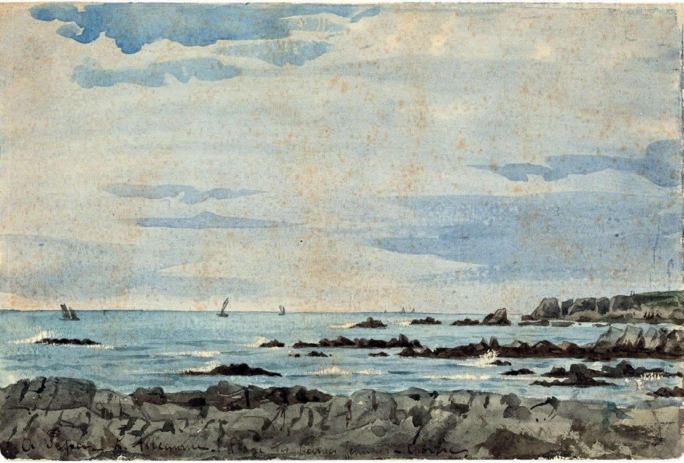 Coastline at Le Croisic, watercolor, dedicated, signed and localised lower left