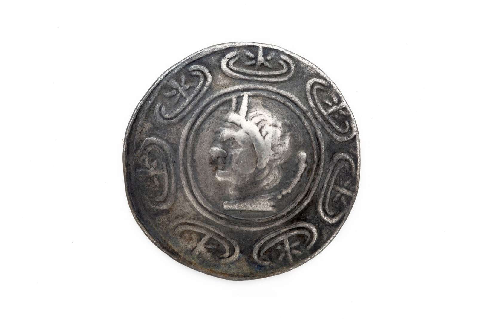 en argent. Avers à tête de Pau dans un bouclier - Revers Athéna debout.
