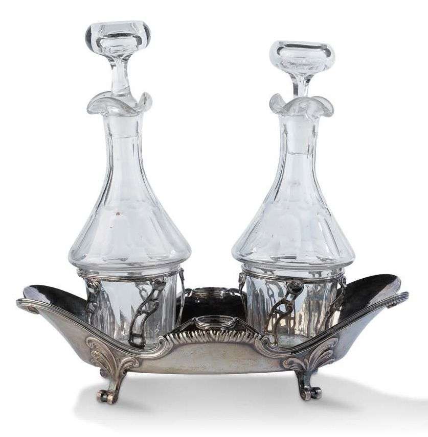 en argent de forme rocaille. Les panses des contenants à décor ajouré de torsades.