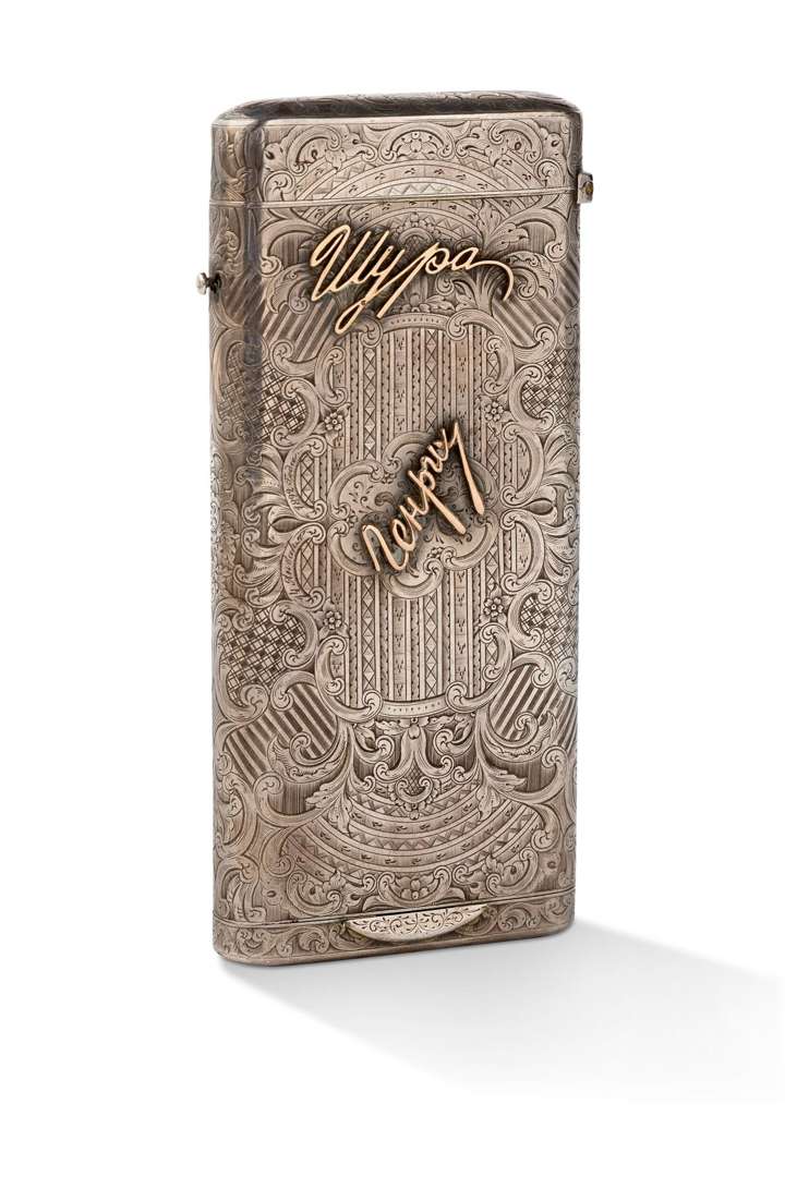 en argent gravé et décor appliqué de signatures, initales et couronne comtale.