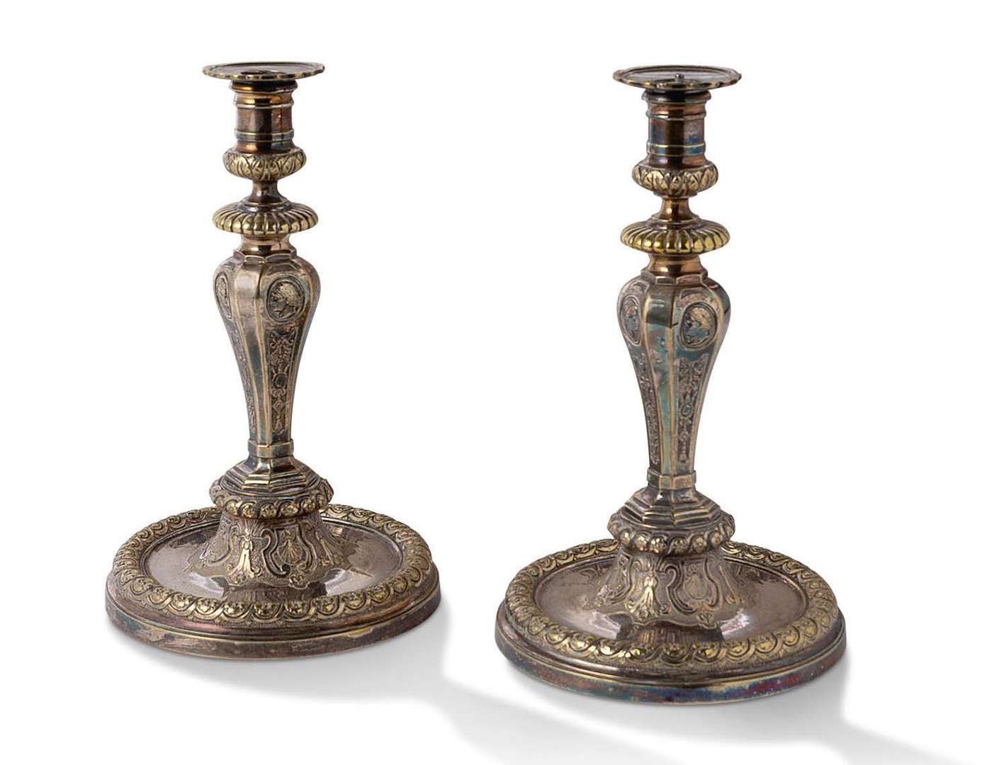 en métal argenté richement décoré de médaillons, frise de fleurons et godrons.
