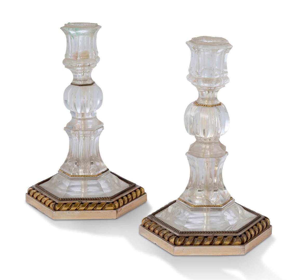 PAIRE DE FLAMBEAUX EN CRISTAL DE ROCHE