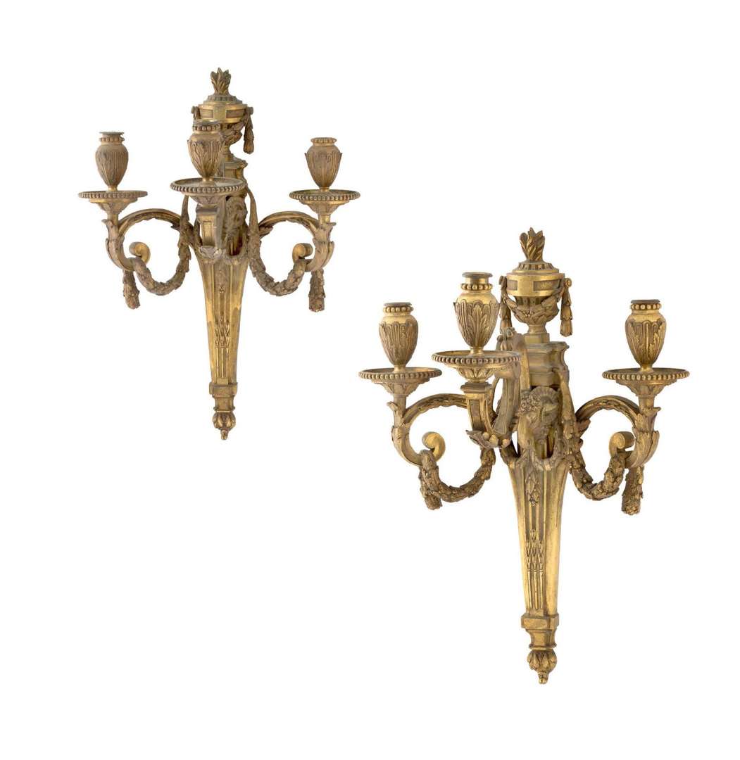 en bronze ciselé et doré à trois bras de lumière. Les bras à enroulements.