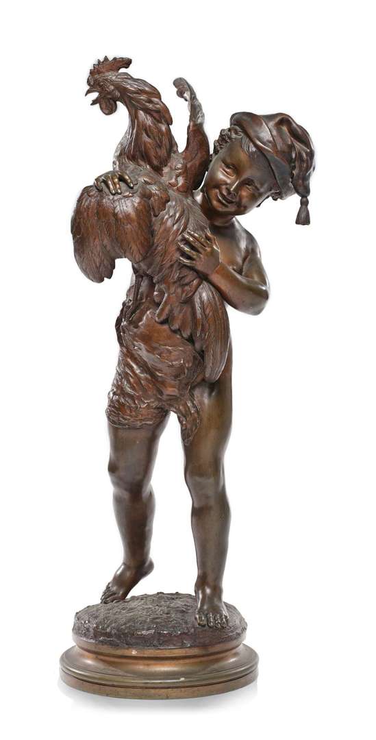 Grand sujet en bronze à patine brune signé sur la terrasse.
