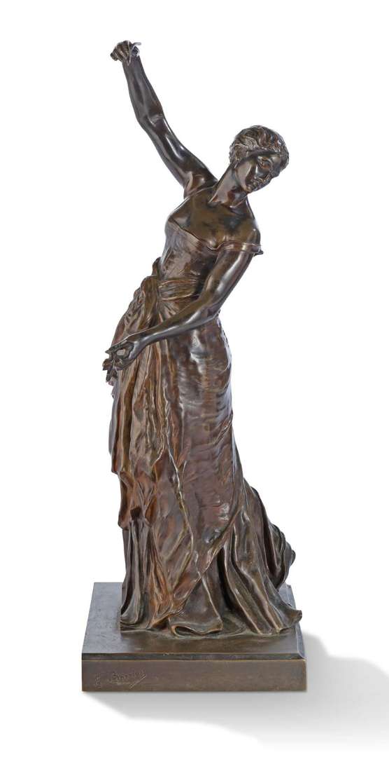 Ce bronze représentant une femme tenant un stylet de la main droite et un brin de laurier de la main gauche est une réduction de la figure de la Comédie qui grave le nom d'Émile Augier sur le piédestal du monument érigé en hommage au poète et dramaturge en 1895 place de l'Odéon à Paris