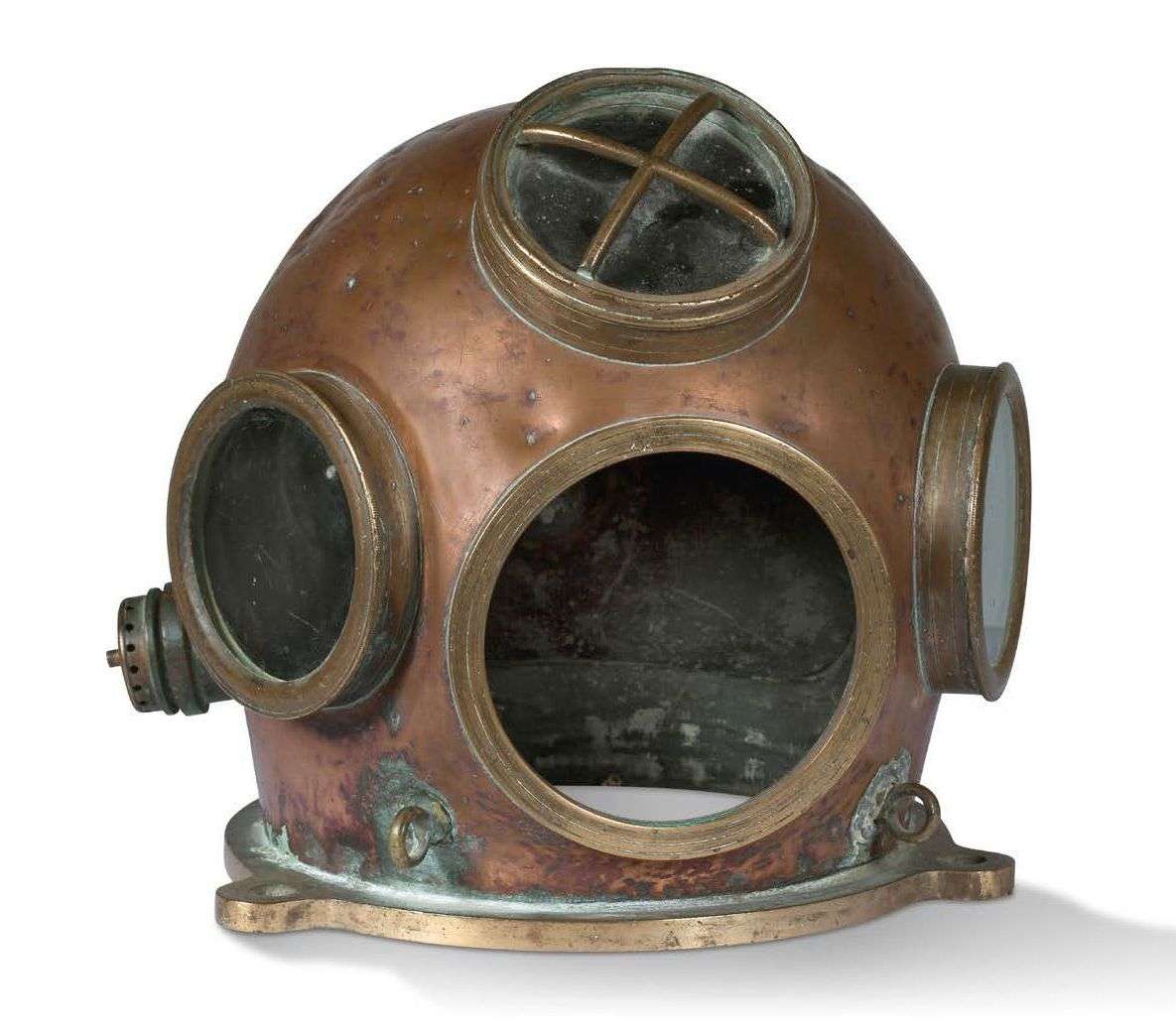 en cuivre, et laiton. Modèle ancien à trois boulons (manquants) et quatre hublots dont deux latéraux.