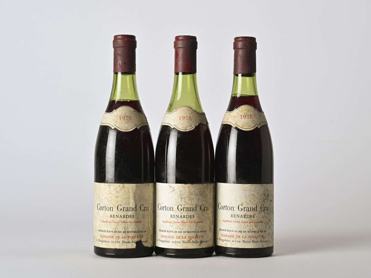 3 B CORTON-RENARDES (Grand Cru) (1 à 2,5| 1 à 3,5 et 1 à 5,5 cm| e.t.h. dont 1 e.a. et 1 e.t.a| 2 clm.s| 1 clm.a| 2 c.l.a.) - 1978 - Domaine de la Poulette