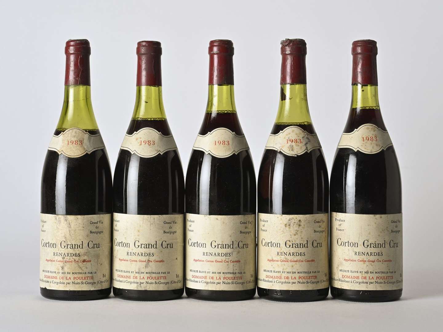 5 B CORTON-RENARDES (Grand Cru) (1 à 2,5| 1 à 3| 1 à 3,5| 1 à 4,5 et 1 à 5 cm| e.t.h. dont 1 e.l.a| 3 c.a.) - 1983 - Domaine de la Poulette