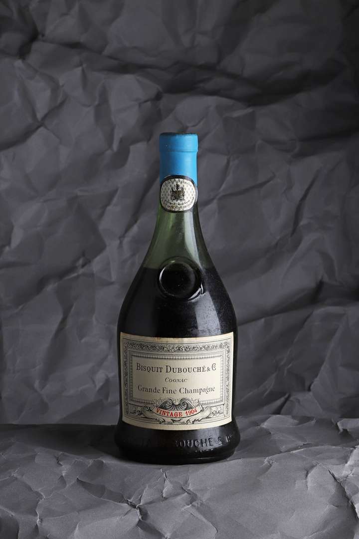 1 B Cognac Grande Fine Champagne 1904 (6,5 cm| macaron en cire légèrement abimé| belle présentation) (étui d'origine) Bisquit-Dubouché