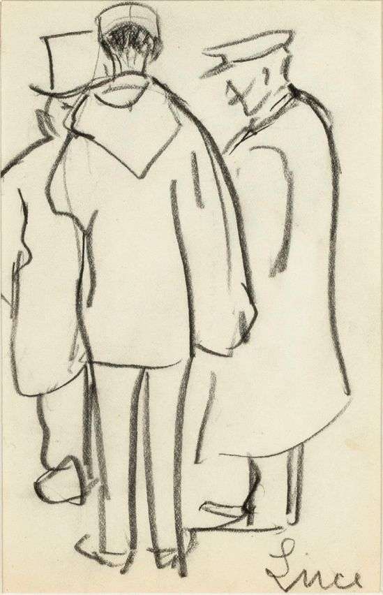 Trois hommes debout conversant