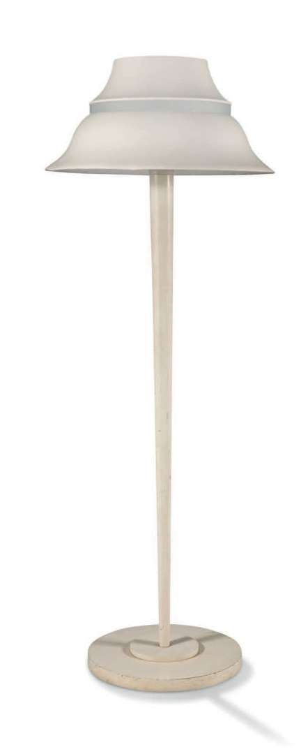 A "61" floor lamp, designed in 1930, cream lacquered metal, lampshade with a frosted glass band.
