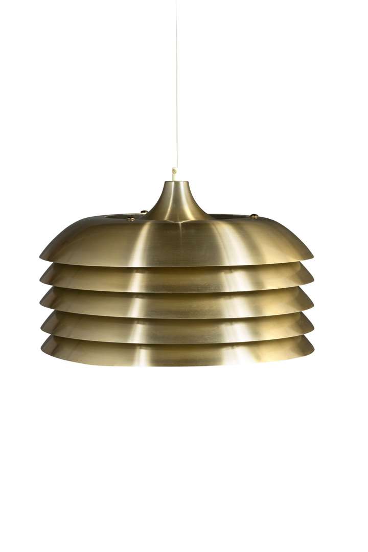 A "T 742" ceiling lamp, c. 1960, gilded and white lacquered metal.