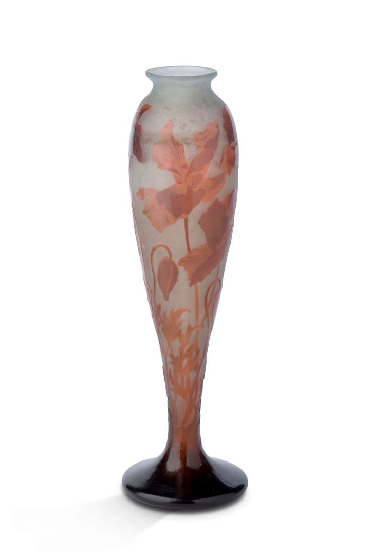 A vase, orange and white multi-layered glass with acid-etched decoration. Signed.