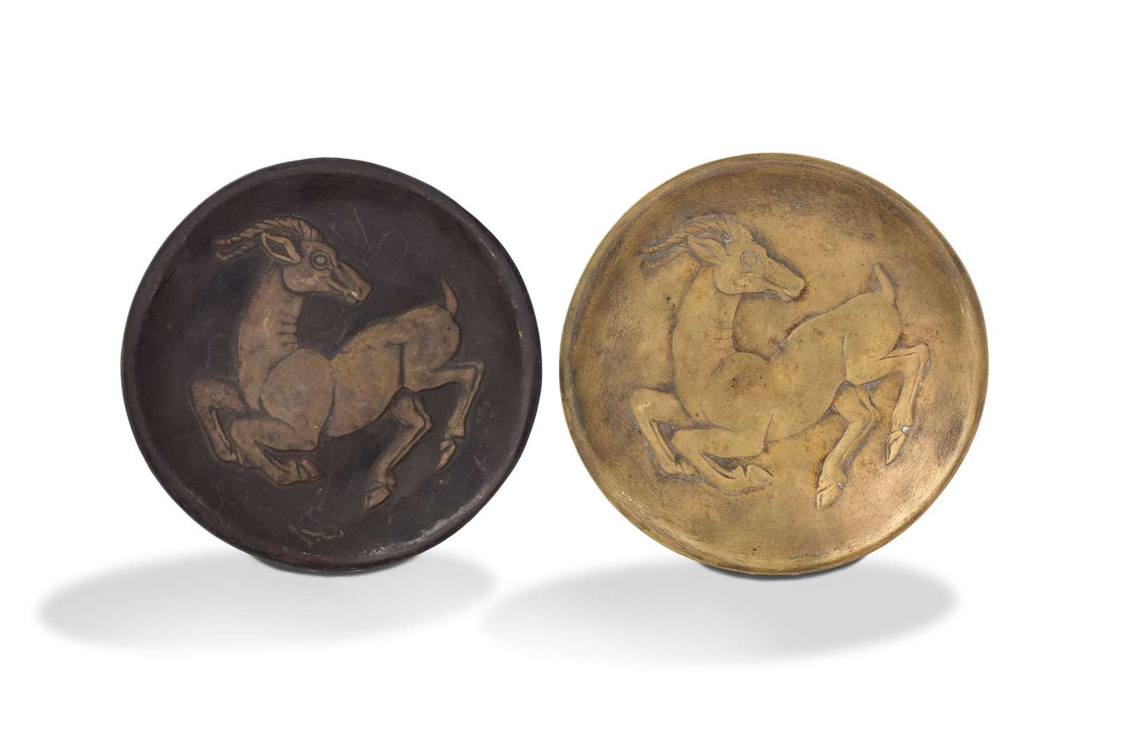 A set of two bronze bowls, c.1978. Stamped and numbered.