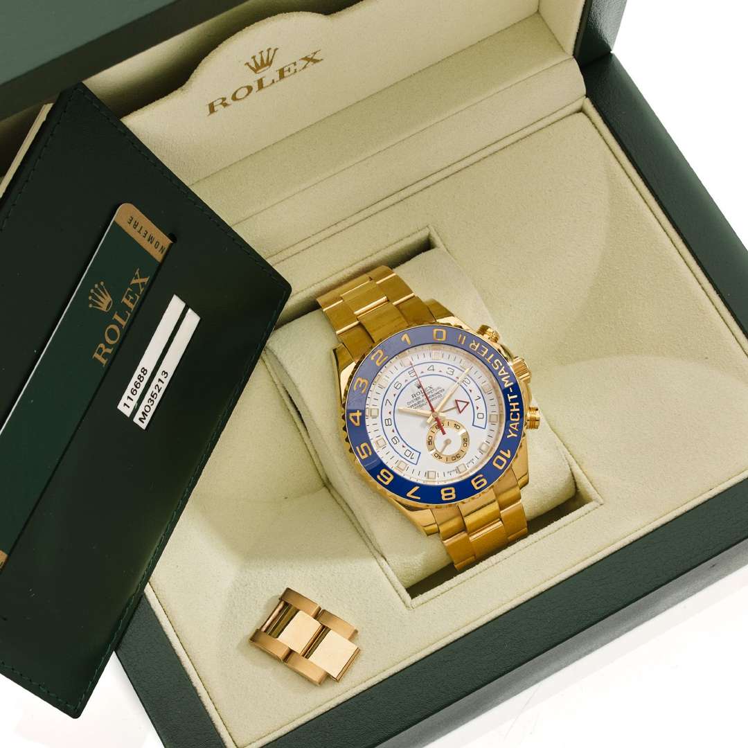 A 18k yellow gold wristwatch with center seconds and regatta mode, gold bracelet signed