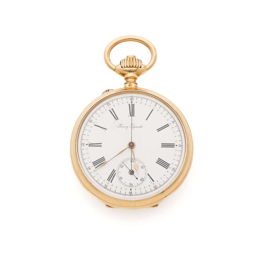 A 18k gold keyless pocket watch by Henry Lepaute with chronograph