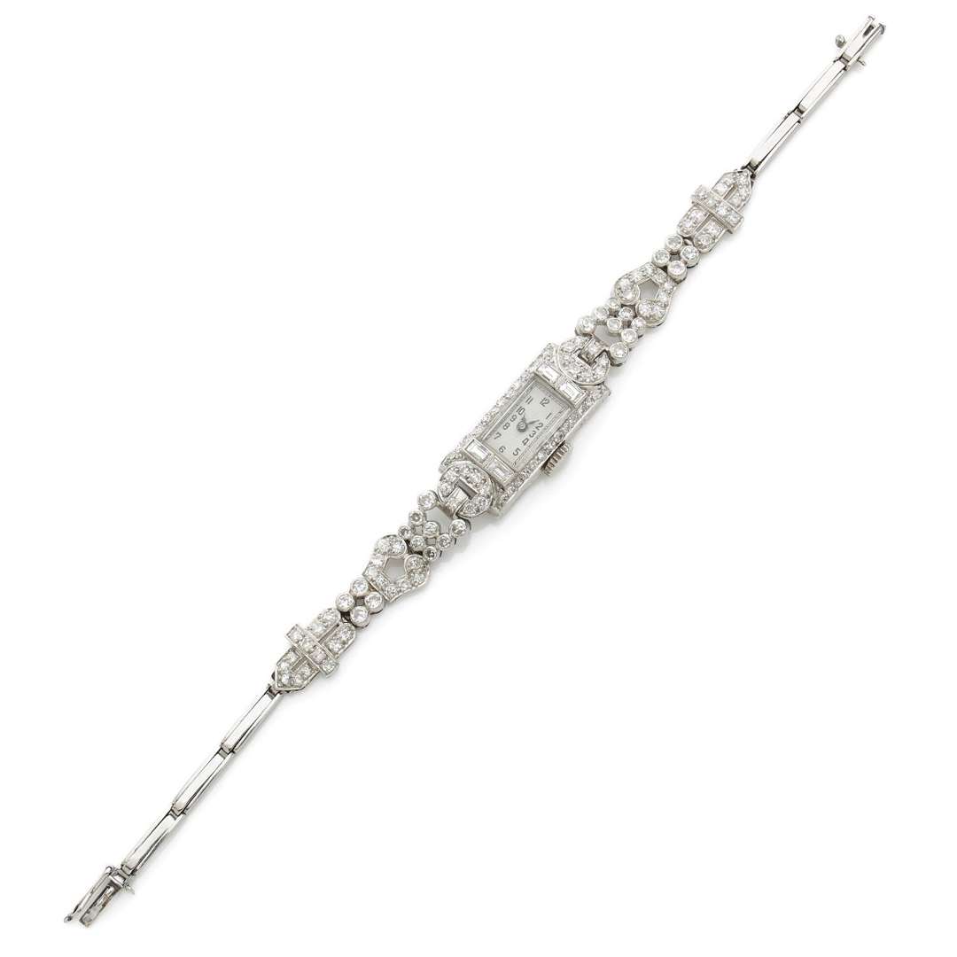 A 18k white gold manual winding wristwatch set with diamonds