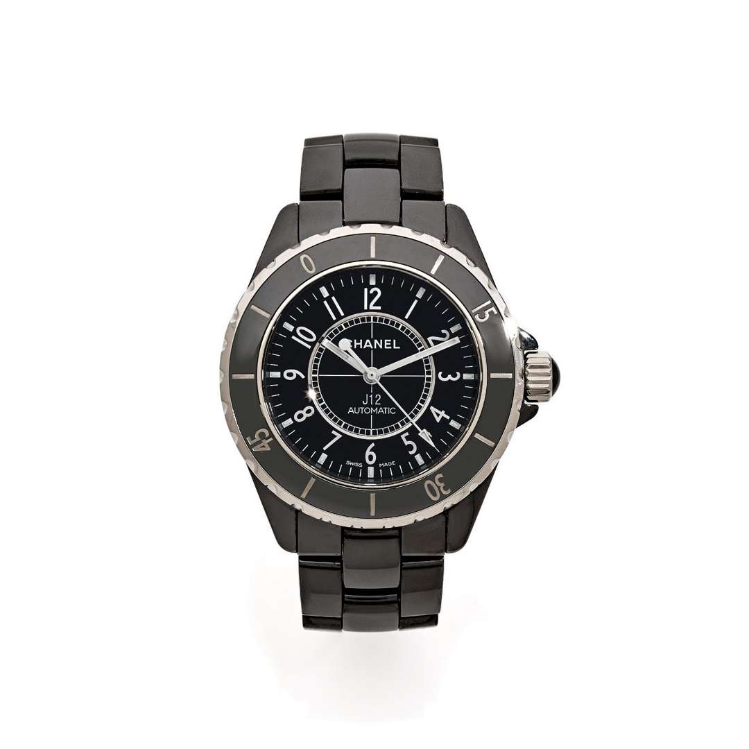 A black ceramic automatic wristwatch with black ceramic bracelet, stainless steel deployant clasp signed