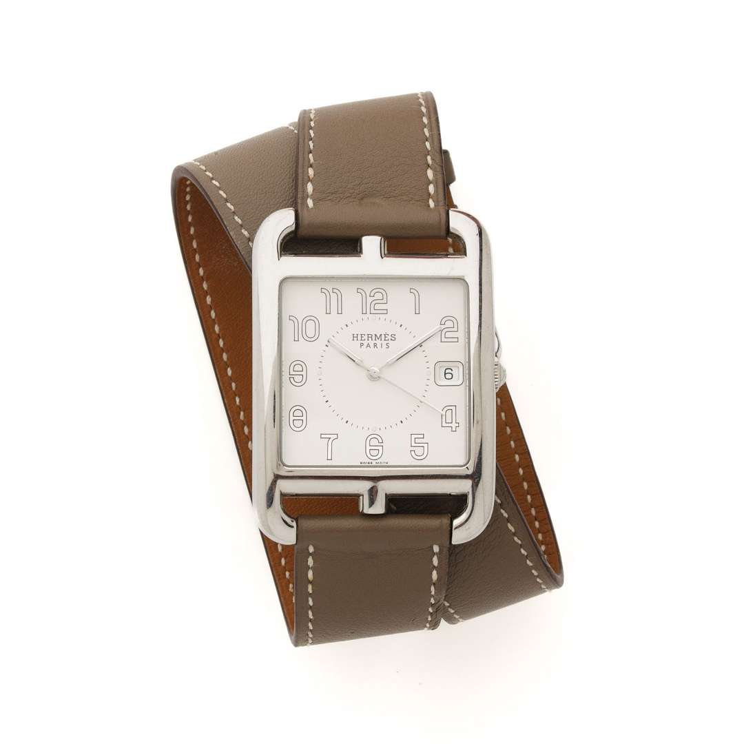 A stainless steel oversize quartz wristwatch by Hermès with stainless steel buckle signed