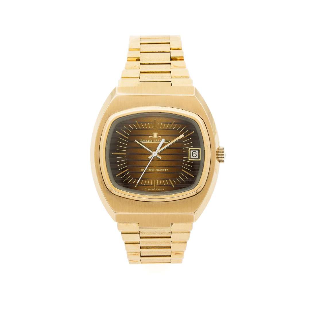 A gold plated and stainless steel quartz wristwatch by Jaeger Le Coultre with gold plated integrated bracelet signed