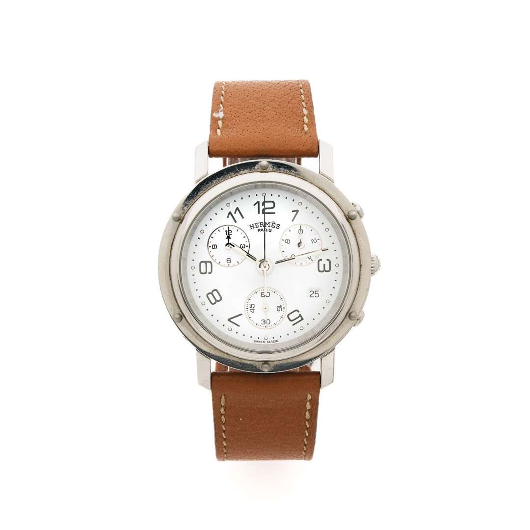 A stainless steel quartz chronograph wristwatch with date indication, stainless steel deployant clasp signed