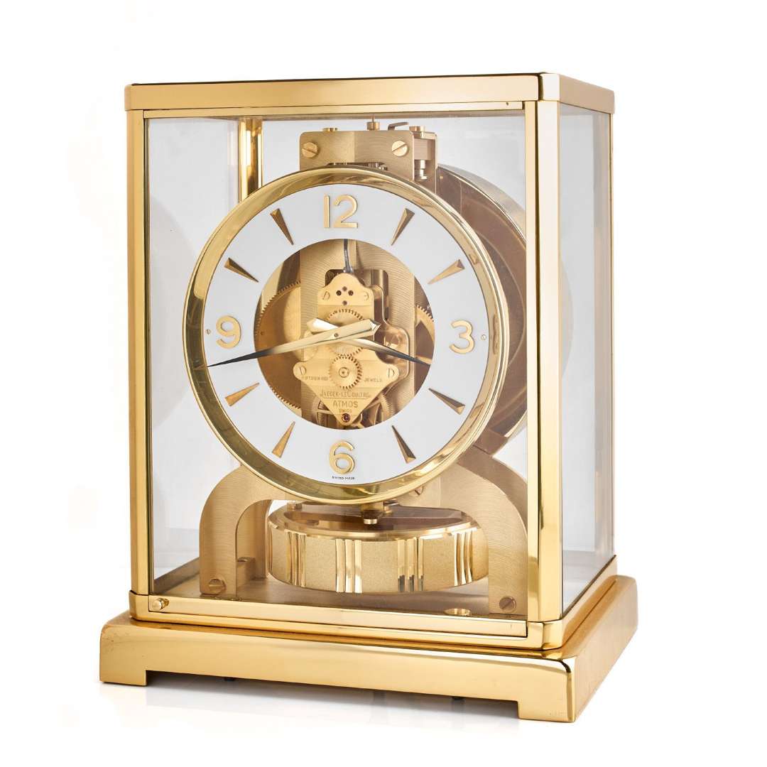 A gilt metal atmospheric clock by Jaeger Le Coultre