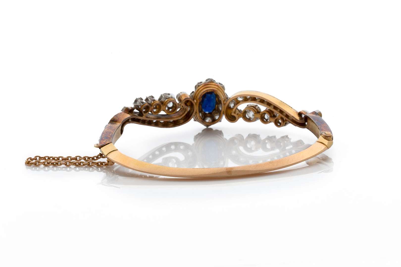 Saphir ovale et diamants taille ancienne
