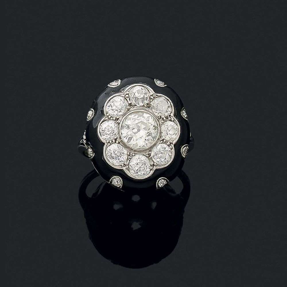 Diamants taille ancienne et émail noir