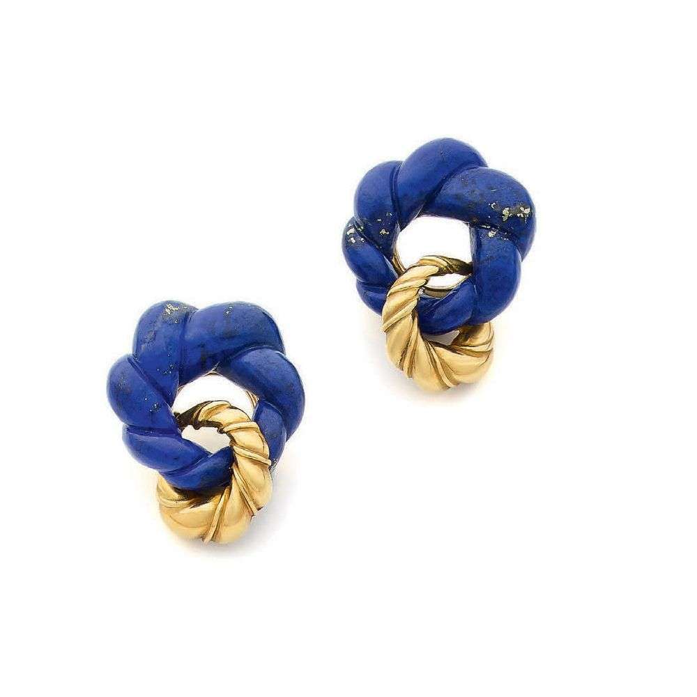 Lapis lazuli and gold earrings, signed Chaumet