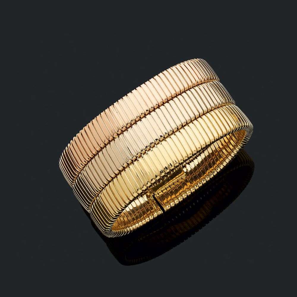 A three gold bracelet, signed Bulgari