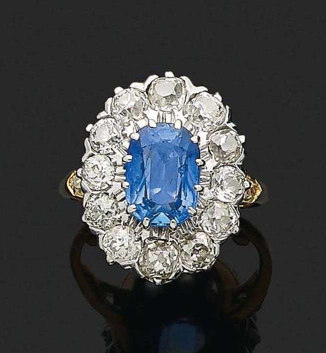 Saphir ovale et diamants taille ancienne