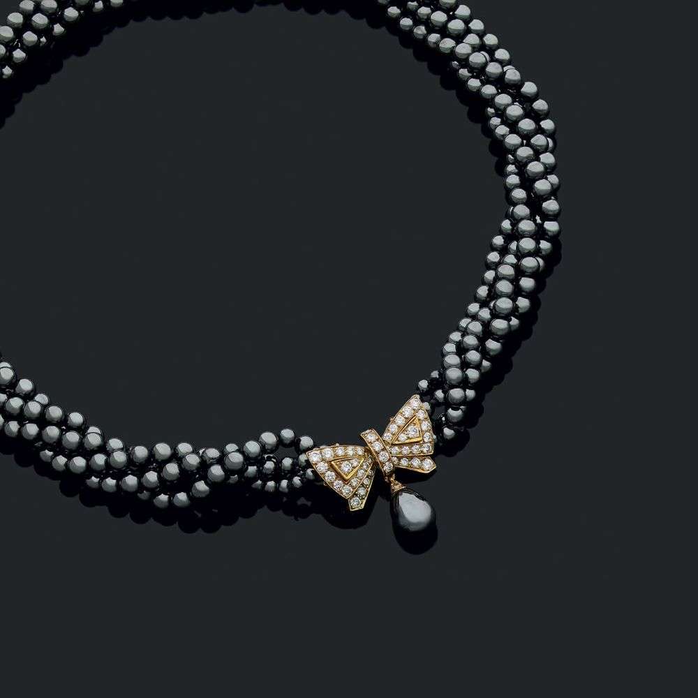 An hematite, diamond and gold necklace, signed Van Cleef & Arpels