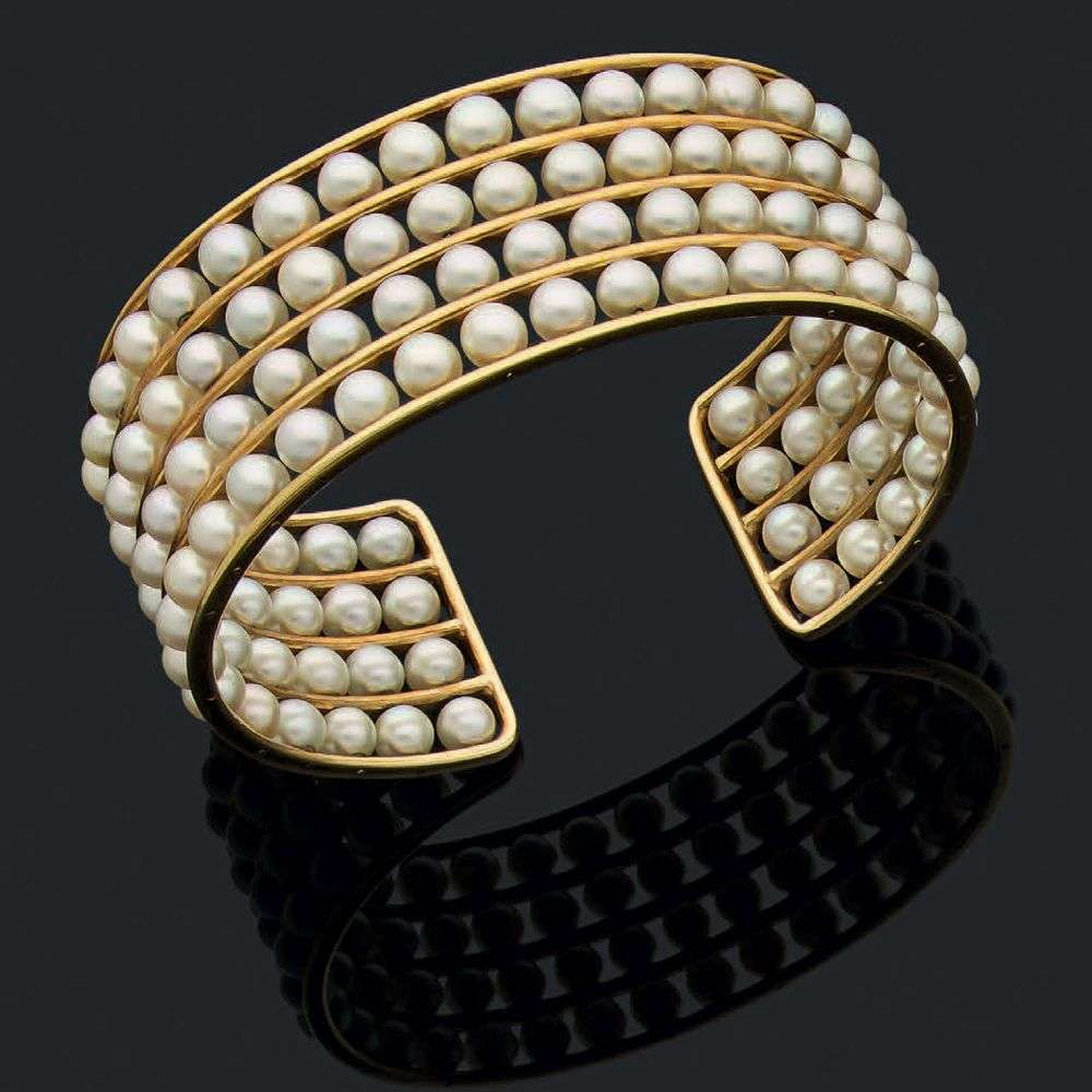 A cultural pearl and gold bracelet