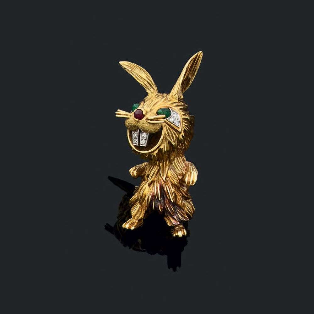 Cabochons d'émeraude et de rubis, diamants taille brillant