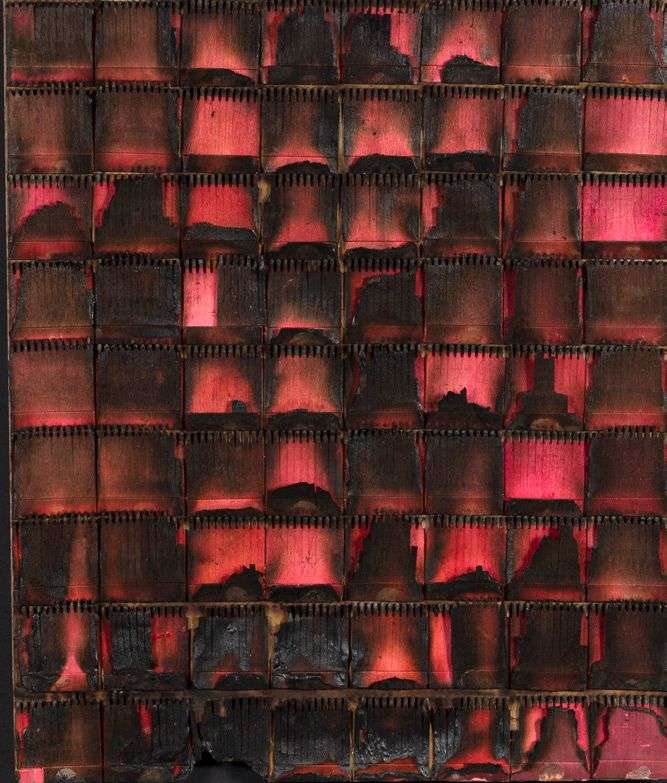 Allumettes, technique mixte et collage sur bois, signé et daté au dos sur l'étiquette