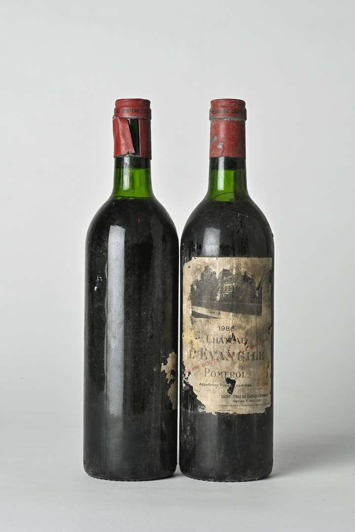 2 B CHÂTEAU L'ÉVANGILE (T.L.B.-| 1 e.t.a| 1 s.e. avec capsule incisée par l'expert pour l'identification du millésime| 1 c.c.) - 1986 - Pomerol