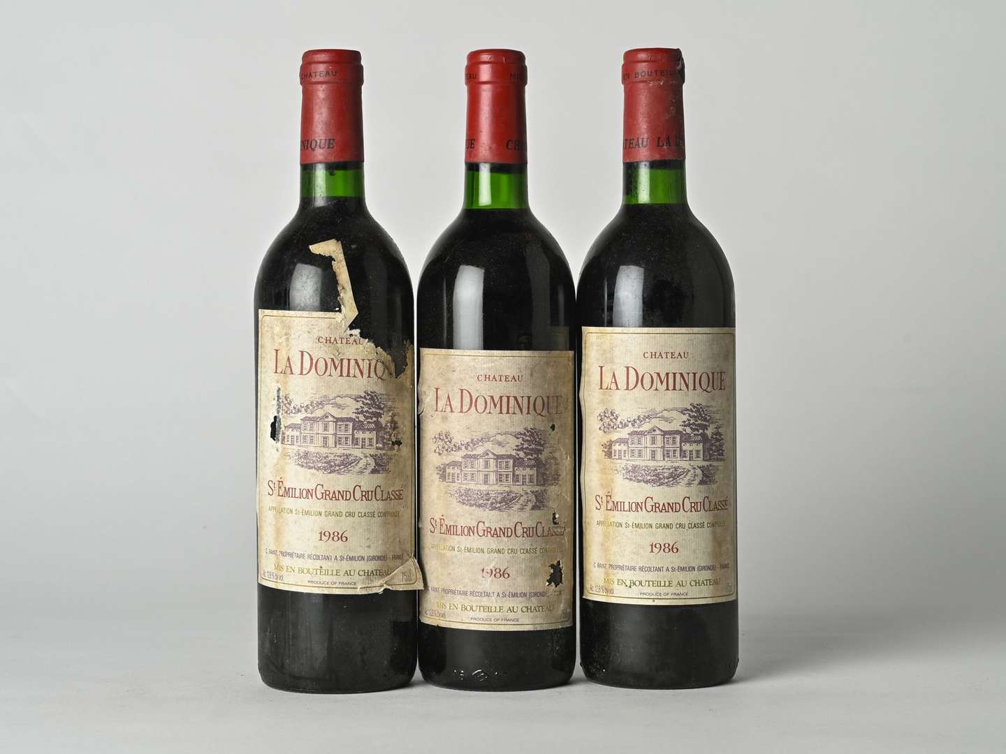 3 B CHÂTEAU LA DOMINIQUE (2 B.G| 1 e.t.h| 2 e.t.a| 1 c.a.) - 1986 - GCC Saint-Emilion