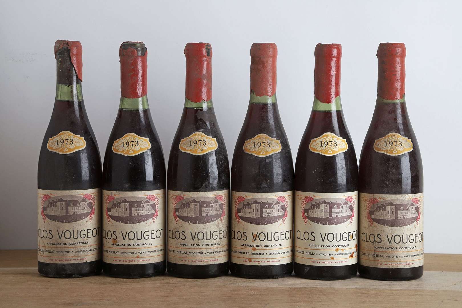 6 B CLOS VOUGEOT (Grand Cru) (2 à 2| 3 à 2,5 et 1 à 3 cm| e.t.h| clm.s| c.s. avec cires abimées) - 1973 - Domaine Charles Noëllat