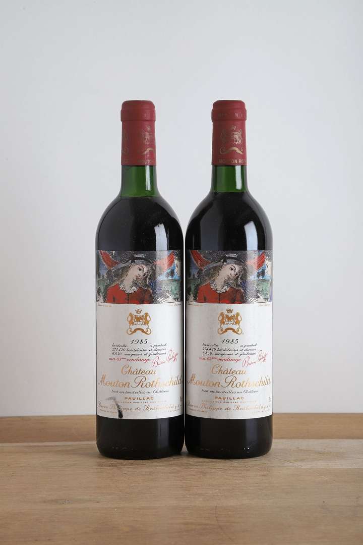 2 B CHÂTEAU MOUTON ROTHSCHILD (1 T.L.B.+| 1 T.L.B| 1 e.t.h. légères et 1 e.a.) - 1985 - GCC1 Pauillac