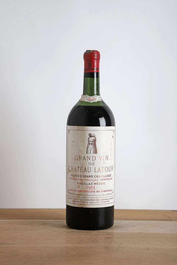 1 Mag CHÂTEAU LATOUR (H.E| e.t.h. à e.l.a| capsule absente au sommet| bouchon estampé "Latour" bouchon apparent sorti de 5 mm) - 1955 - GCC1 Pauillac