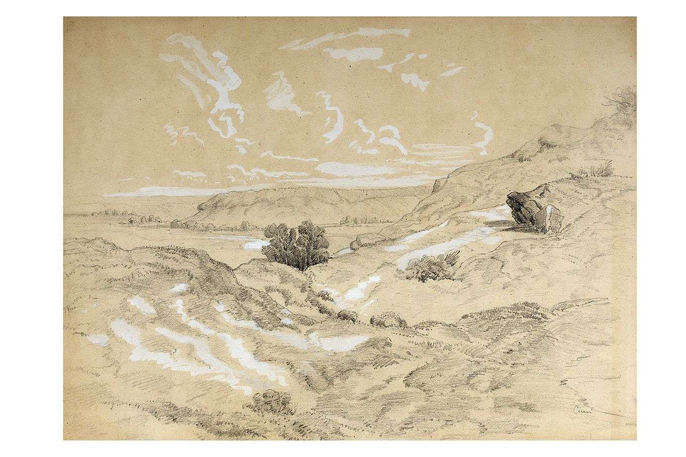 Pierre noire et rehauts de blanc