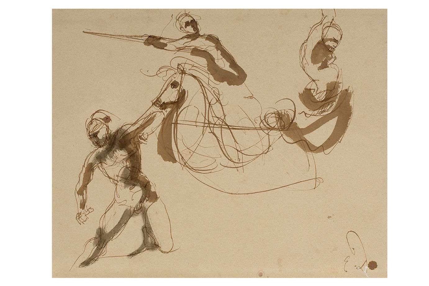 Plume, encre brune, encre noire, lavis brun et lavis gris