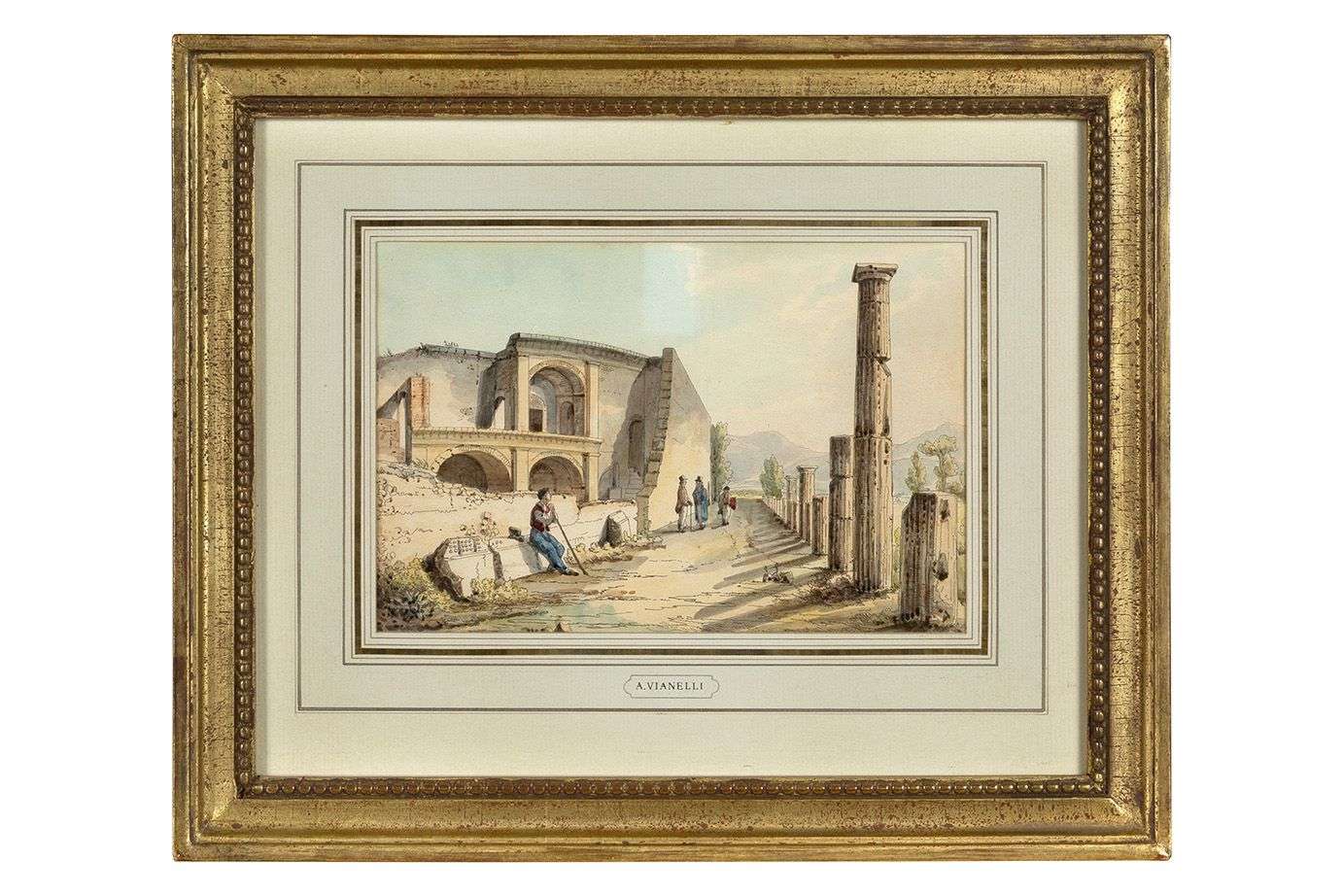 Etiquette au verso Pompei / Vue du Forum triangulaire et de l'Isoletta di Rivigliano / pages 178 et 5 / P.Gusman - Paris 1906 - Emile Gaillard