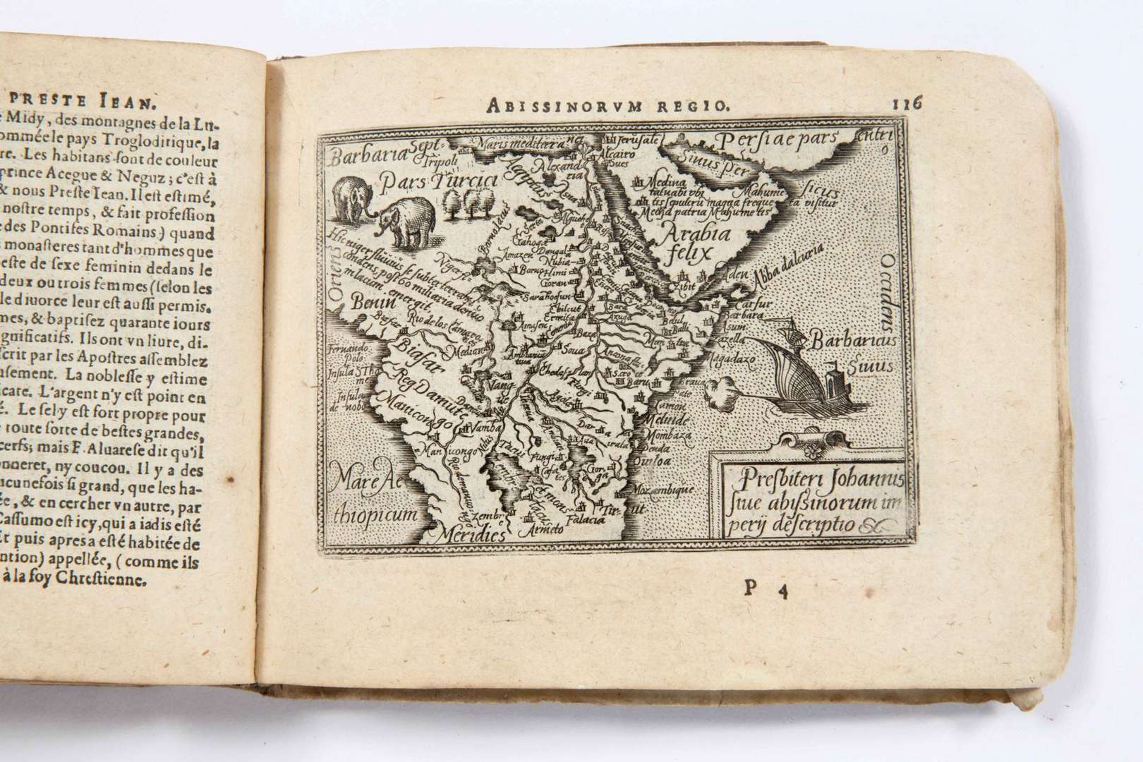 Atlas composé de [8] feuillets (titre, épître au lecteur, Discours de la mer, avec une vignette gravée sur cuivre à pleine page), 118 feuillets, chacun comprenant une carte gravée avec le texte correspondant en regard, [2] f. (table des cartes)| [8] f., le dernier blanc, comprenant « Addition d'aulcunes cartes », avec 5 cartes gravées à pleine page.