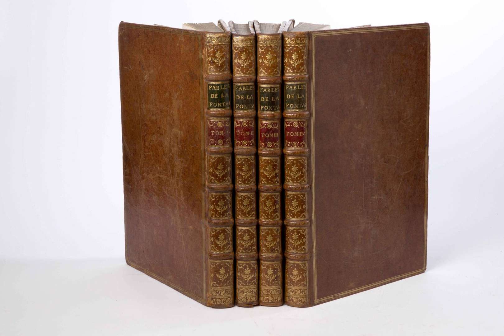 L'illustration se compose d'un frontispice gravé par Cochin, et de 275 planches exécutées par les meilleurs graveurs du temps, dont Aveline, Baquoy, Cars, Fessart, Lebas, Marvie, Tardieu. Second tirage identifié par la mention présente sur la banderole dans l'illustration de la fable du singe et du léopard au t.3.