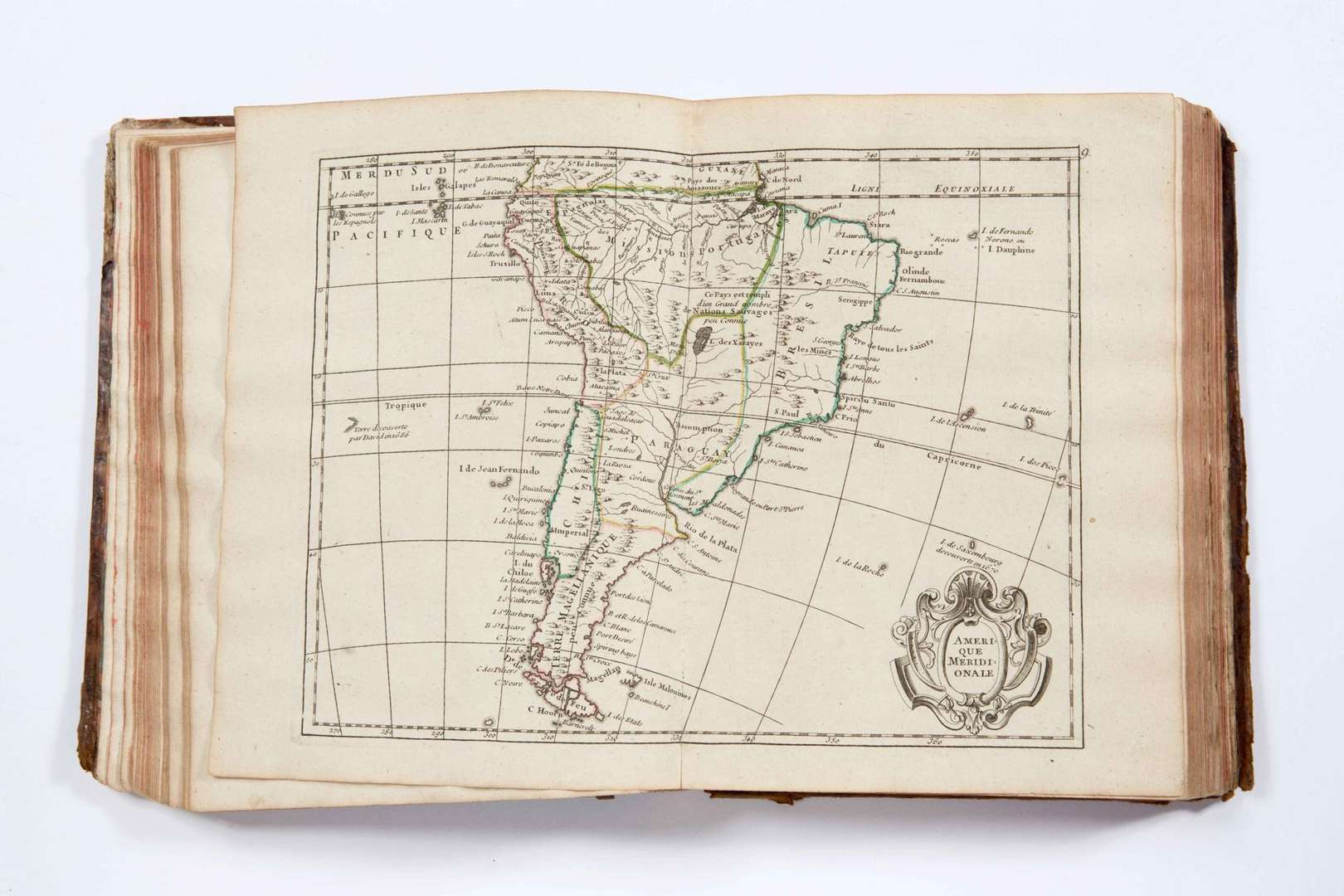 Première partie (seule) de cet atlas, consacrée à la géographie générale (une seconde partie consacrée exclusivement au domaine germanique viendra la compléter en 1759). Elle est composée de: [1] f. (titre gravé double), VI p. (avertissement), [1] f., 36 p. (Introduction à la géographie, dont le titre daté de 1756), 91 planches doubles gravées sur cuivre, dont 90 cartes aux limites coloriées, et la dernière montrant des pavillons de navigation en noir, et [1] feuillet de table