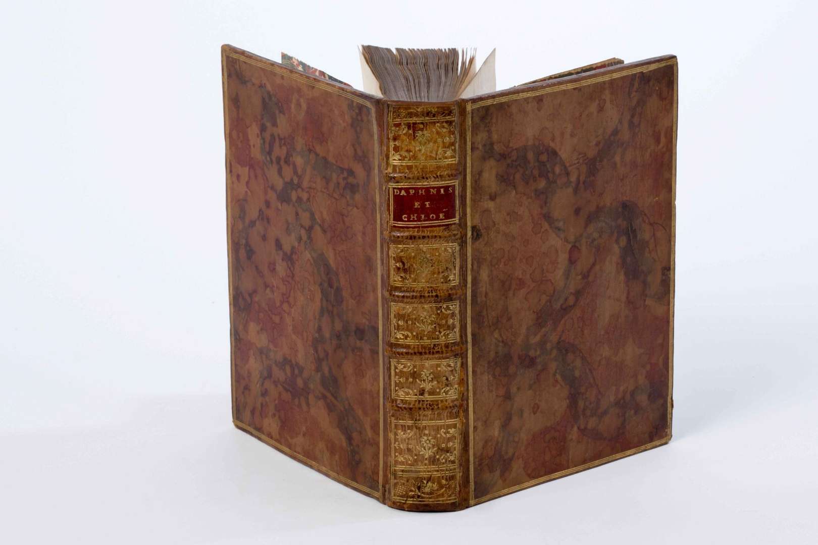 blanc, front., [29] pl., veau écaille époque, dos à 5 nerfs, pièce de titre rouge, caissons ornés, triple filet doré bordant les plats, double filet aux coupes, roulette intérieure, tranches dorées, coiffes restaurées (3 coins frottés).