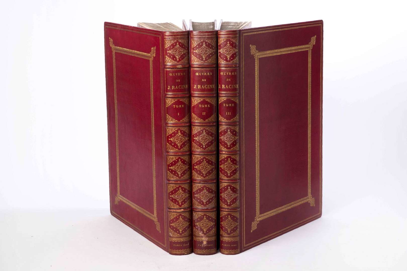 Paris: Pierre Didot l'aîné, an IX - 1801. 3 vol. grand in-folio, maroquin rouge, dos à 6 nerfs saillants, auteur, titre, tomaison, lieu et date dorés, caissons ornés aux petits fers, plats décorés à la Duseuil, le tout doré, double filet aux nerfs, coupes et coiffes, contreplats bordés de maroquin orné d'une roulette et de filets dorés, tranches dorées sur marbrure, étuis [Belz- Niedrée] (étuis frottés| accroc superf. au dos du t.2, légers frott. aux coupes, nerfs, mors inf. du tome 3).