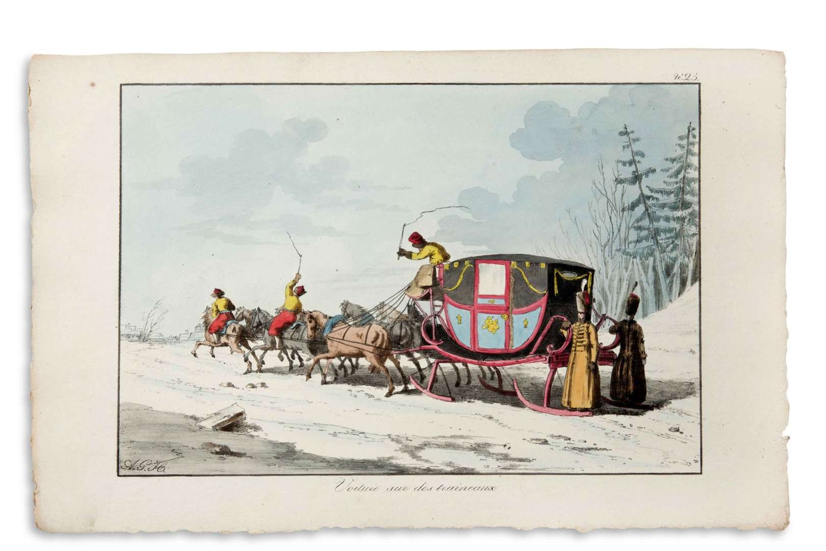Importante suite de 50 planches en couleurs montrant divers aspects de la vie en Russie, dont les costumes, les activités laborieuses et récréatives, d'après les compostions de l'illustrateur français A.-G. Houbigant (1790-1863).